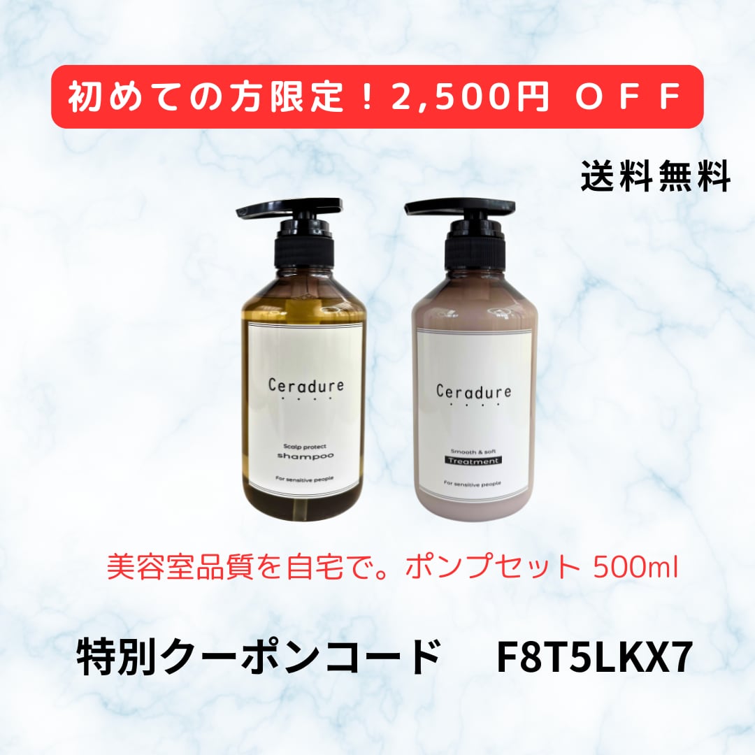 2,500円OFF! 初めての方限定!お試しセット 美容室品質 セラデュラ ポンプセット 500ml 送料無料 特別クーポンコード F8T5LKX7